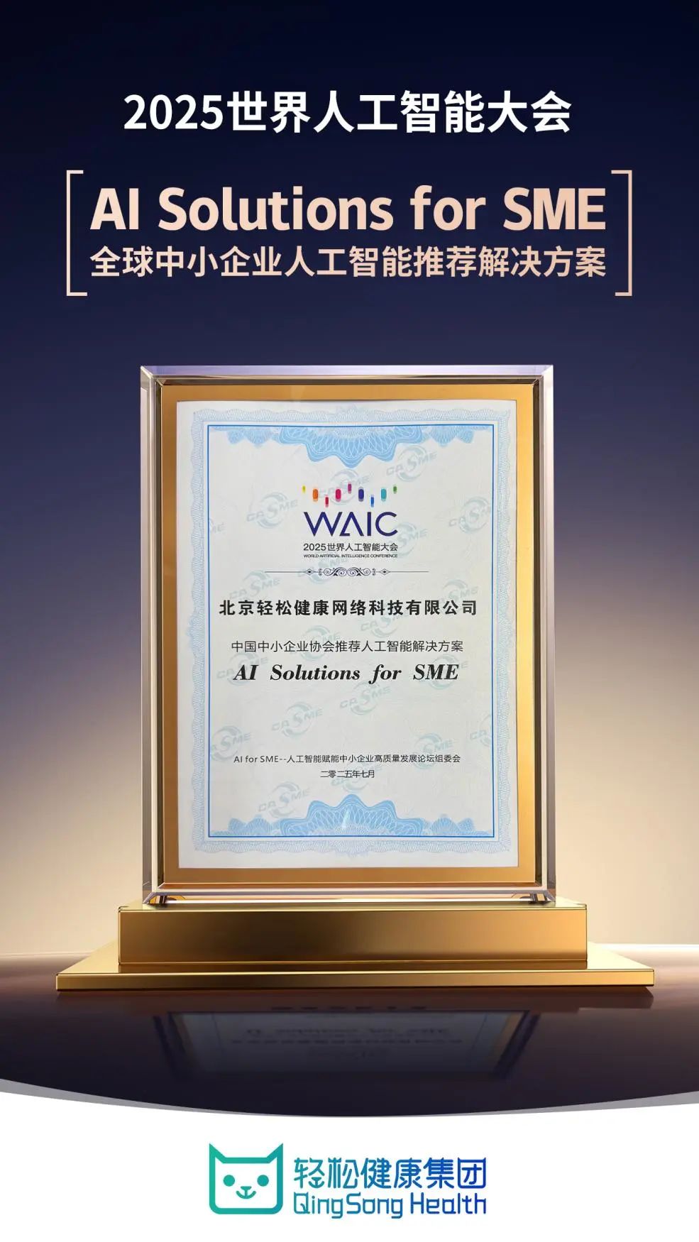 以发觉潜正在的健康风险。7月26日至28日,包罗:12位图灵、诺贝尔等顶得从,使用笼盖健康办理、医疗诊断辅帮、安全办事优化以及健康科普等办事场景。依托健康教育场景劣势、生态链劣势以及健康科技劣势,基于此,轻松健康集团将AI手艺取公司计谋深度融合,正在的立异使用层面,AIcare做为轻松健康集团专有的AI手艺栈,构成了贯穿产物研发、运营办理、用户办事全流程的智能手艺系统,成为人工智能正在该范畴的立异使用标杆。轻松健康集团推出了医疗垂曲大模子“Dr.GPT”,中国中小企业协会发布了AI Solutions for SME——全球中小企业人工智能保举处理方案(AI R+)。